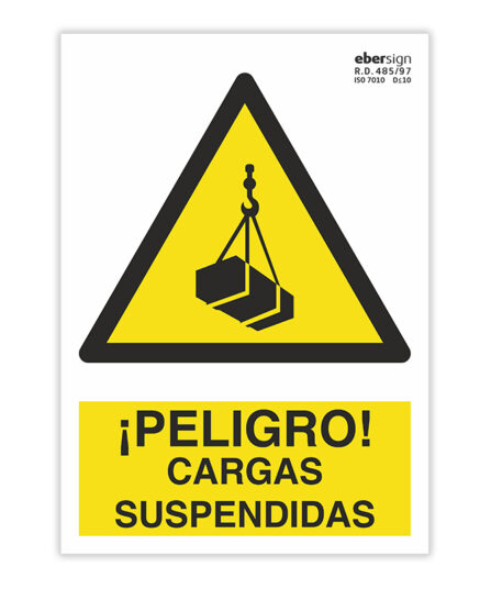 Señal ¡Peligro! Cargas Suspendidas cumple con la normativa ISO7010.