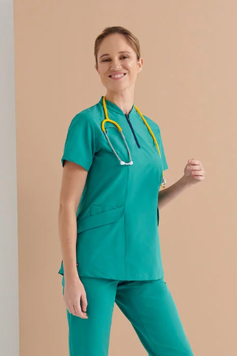 La línea MÁSTER de la colección MONZA We Care reinterpreta los colores históricos del sector sanitario llevándolos hacia tonos insaturados que con toques navy dan como resultado una sensación de elegancia y distinción.